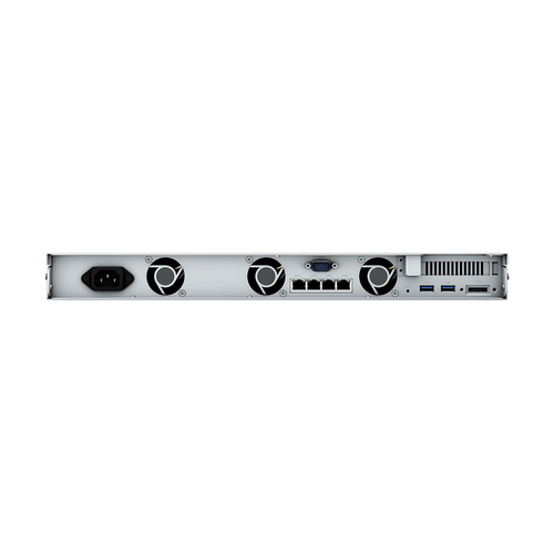 ? Kapazität: 4x 2.5"/3.5", SATA 6Gb/s, Hot-Swap ? Anschluss: 2x USB-A 3.0, 1x seriell, 1x eSATA, 1x PCIe 3.0x8 ? RAID: 0/1/5/6/10/JBOD ? Prozessor: AMD Ryzen Embedded V1500B, 2.20GHz ? RAM: 2GB DDR4 ECC