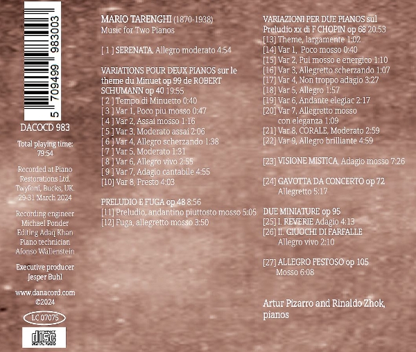 Du besitzst "Tarenghi: Werke für Zwei Klaviere" oder kennst den Artikel bereits?