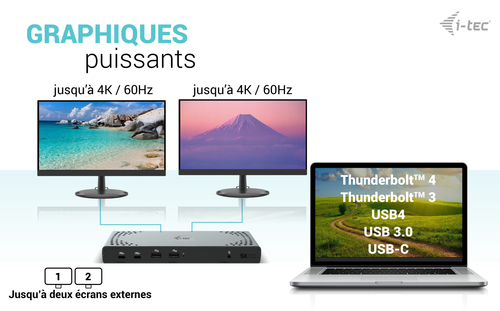 i-tec USB-C Docking Station CADUA4KDOCKPDL2 USB 3.0 Thunderbolt 3 + Thunderbolt 4
