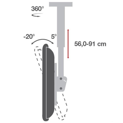 Design | | Anti-Diebstahlfunktion | Nein | | Gehäusematerial | Stahl | | Produktfarbe | Schwarz | Ergonomie | | Abstand zur Wand (max) | 91 cm | | Abstand zur Wand (min) | 56 cm | | Eingebaute Wasserwaage | Nein | | Swivel Winkel | 360 ° | | Neigungswinkelbereich | -20 - 5 ° | | Höhenverstellung | Ja | Gewicht und Abmessungen | | Gewicht | 10,3 kg | | Höhe | 1128 mm | | Tiefe | 435 mm | | Breite | 480 mm | Lieferumfang | | Montageset | Ja | Logistikdaten | | Warentarifnummer (HS) | 85299097 | Montage | | Panel-Montage-Schnittstelle | 200 x 200,300 x 300,400 x 200,400 x 400 mm | | Minimum Bildschirmgröße | 81,3 cm | | Maximale VESA-Halterung | 400 x 400 mm | | Minimale VESA-Halterung | 200 x 200 mm | | Höchstgewichtskapazität | 90 kg | | Befestigungstyp | Zimmerdecke | | Maximale Bildschirmgröße | 139,7 cm | | Anzahl der Display unterstützt | 1 | Technische Details | | Garantiezeit | 10 Jahr(e) |