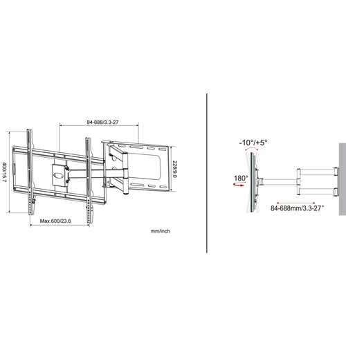 Maximale VESA-Halterung600 x 400 mm