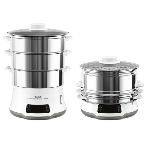 Beschreibung:Ein 3-stufiger Dampfgarer für gesunde und köstliche Gerichte ganz mühelos zubereitet Mit einem höchst intuitiven Touchscreen und 8 benutzerfreundlichen Programmen, entdecken Sie gesunde und köstliche hausgemachte Gerichte mit dem Dampfgarer Convenient Series Deluxe von Tefal. Noch nie war Dampfgaren so einfach - oder geschmackvoller - mit erstklassigen Behältern aus Edelstahl in einem drei-stufigen Design für eine ultimative Vielseitigkeit und totalen Komfort, mit einer vollständigen Reihe an erweiterten Funktionen und einem raffinierten Design für müheloses Dampfgaren jeden Tag. Hauptmerkmale Design Anzahl der Körbe 3 Korb/Körbe Produktfarbe Edelstahl, Weiß Geräteplatzierung Arbeitsplatte Steuerung Berührung Steuerungsposition Vorderseite Schüsselmaterial Edelstahl Display Digital Innenkapazität 9 l Fassungsvermögen Wassertank 1,2 l Reisschüssel Ja Entfernbare Schüssel Ja Kabellänge 0,8 m Ursprungsland China Leistungen Anzahl der Programme 8 Anzahl an Kochprogrammen 8 Kochfunktionen und