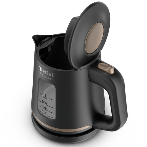 Beschreibung:Tefal Includeo Wasserkocher: für jedermann geeignet! Der Tefal Includeo Wasserkocher eignet sich für jedermann! Vom großzügigen, einfach zu bedienenden Knopf zum Öffnen und Schließen auf dem Deckel, bis zum robusten Anti-Rutsch-Griff - Tefal hat an alles gedacht, um den täglichen Gebrauch möglichst einfach zu gestalten. Mit einem angenehmen Gewicht und einer Kapazität von 1 Liter verfügt dieser elektrische Wasserkocher über eine große Wasserstandsanzeige auf beiden Seiten mit klaren Maßangaben zum einfachen Ablesen. Ferner verfügt dieser Wasserkocher über einen 360°-Drehsockel mit einem kontrastfarbenen Ring für einfaches Abstellen aus jeder Position. Abgerundet wird das Ganze durch einen leicht zu bedienenden Ein-/Ausschalter mit Kontrollleuchte und eine präzise Ausgießhilfe für einfaches Servieren. Tefal Includeo: für Sie entworfen - für jedermann geeignet! Hauptmerkmale Merkmale Fassungsvermögen Wassertank 1 l Produktfarbe Schwarz Gehäusematerial Kunststoff Anti-Kalk-Filter Ja Steuerung