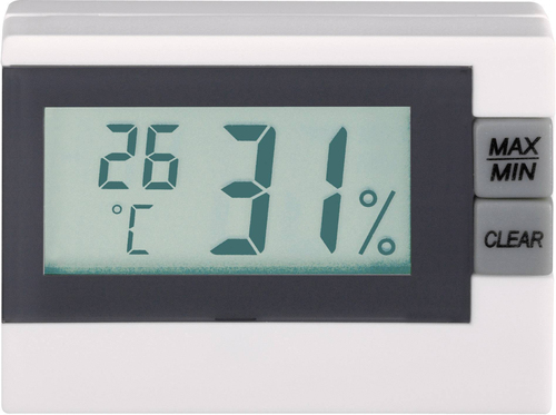 Beschreibung:Beschreibung Mini-Thermo-/Hygrometer Min-/Max-Funktion Universell einsetzbar Sehr kompaktes Thermo-/Hygrometer zum Messen der Innentemperatur und der Innenluftfeuchte. Ausstattung: Als Tisch- oder Wandgerät einsetzbar LC-Display. Technische Daten: Abmessungen (Basisstation): 53 x 39 x 15 mm Farbe: Weiß Funktionen (Wetterstationen): Innenluftfeuchte,Innentemperatur,MAX-/MIN-Werte Messbereich Außentemperatur: - °C Messbereich Innenluftfeuchte: 10 bis 99 % Messbereich Innentemperatur: -10 bis +60 °C Spannungsversorgung Station: LR44 Knopfzelle, inkl. Wetterstation-Art (Kategorisierung): Thermo-/Hygrometer digital Lieferumfang: Inkl. Batterie