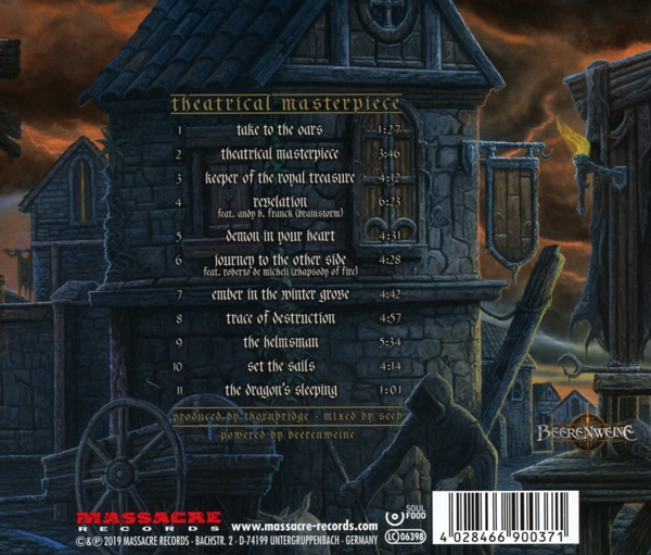 Beschreibung:Bass: Patrick Burghard, Choir [Choral]: André Siekmann, Choir [Choral]: Eva Leye, Choir [Choral]: Fabian Marmor, Choir [Choral]: Fabian Mester, Choir [Choral]: Julian Jönck, Choir [Choral]: Nadine Mittmann, Choir [Choral]: Patrick Rogalski, Choir [Choral]: René Krov, Choir [Choral]: Sascha Rose (2), Design, Layout: Patrick Burghard, Drums: Maximilian Glück, Guitar [Guitars]: Patrick Rogalski, Illustration, Artwork: Juanjo Castellano, Mixed By: Sebastian Levermann, Music By, Lyrics By: Jörg Naneder, Producer: Thornbridge, Recorded By [Heavy guitars and bass], Edited By: Patrick Rogalski, Recorded By, Engineer, Edited By [Editing], Mastered By: Sebastian Levermann, Vocals, Guitar [Guitars]: Jörg Naneder, Featuring, Vocals [Guest vocals]: Andy B. Franck, Featuring, Soloist [Guitar Solo]: Roberto De Micheli, Labelcode MAS 1037 (MAS CD1037), Phonographic Copyright (p) Massacre Records, Copyright (c) Massacre Records, Glass Mastered At Sony DADC, Distributed By Soulfood (2), Mixed At Green Man Studios, Mastered At Green Man Studios, Engineered At Green Man Studios