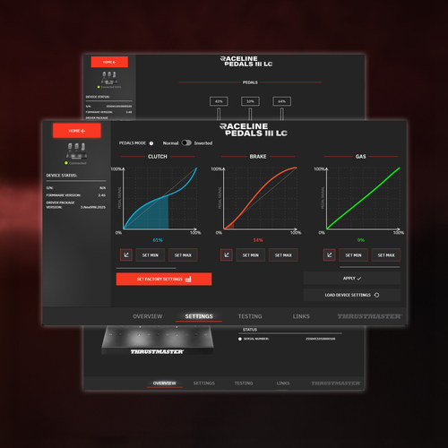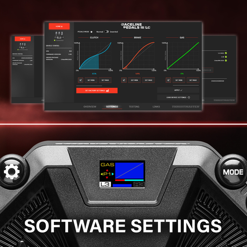 Technisch bedeutet LC (Load Cell), dass das Bremspedal den tatsächlichen Druck misst, den Sie ausüben, statt nur die Distanz des Tretwegs zu erfassen. Das sorgt für reproduzierbare Bremspunkte und konstantere Rundenzeiten. Das Upgrade-Pedalset ist robust konstruiert, in der Regel mit stabilen Metallkomponenten, die für hohe und häufige Belastungen ausgelegt sind, und einer Pedalgeometrie, die auf eine rennsportliche Sitzposition optimiert ist. Typischerweise bietet es Einstellmöglichkeiten für Pedalwiderstand und -weg - etwa über austauschbare Elastomere oder Einstellschrauben -, sodass Sie zwischen einem weichen oder sehr straffen Rennbremsgefühl wählen können, je nachdem, ob Sie GT-Fahrzeuge, Formel-Boliden oder Rallye-Autos simulieren. Das Add-on ist für KON/PC-Kompatibilität ausgelegt und kann mit unterstützten Thrustmaster-Wheel-Bases genutzt und über gängige Befestigungspunkte in Ihr vorhandenes Cockpit integriert werden.