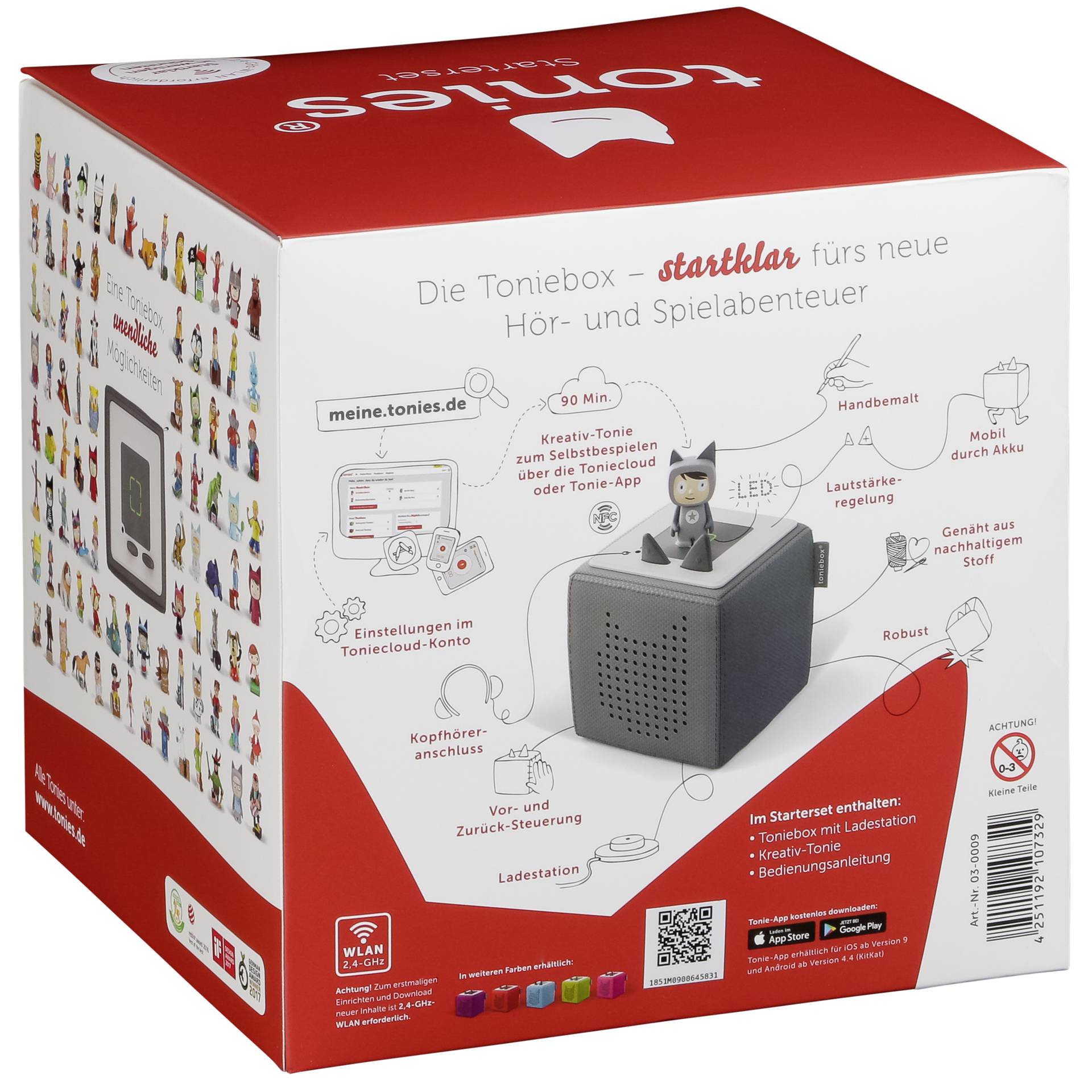 Steige ein in das neue Hör- und Spielerlebnis - mit dem tonies Starterset Einfach auspacken und sofort loslegen! Das steckt alles drin im Karton: - Eine Toniebox in deiner gewählten Farbe - Ein exklusiver Kreativ-Tonie in der Toniebox-Farbe - Eine Ladestation zum Aufladen deines Toniebox-Akkus - Eine leicht verständliche Bedienungsanleitung