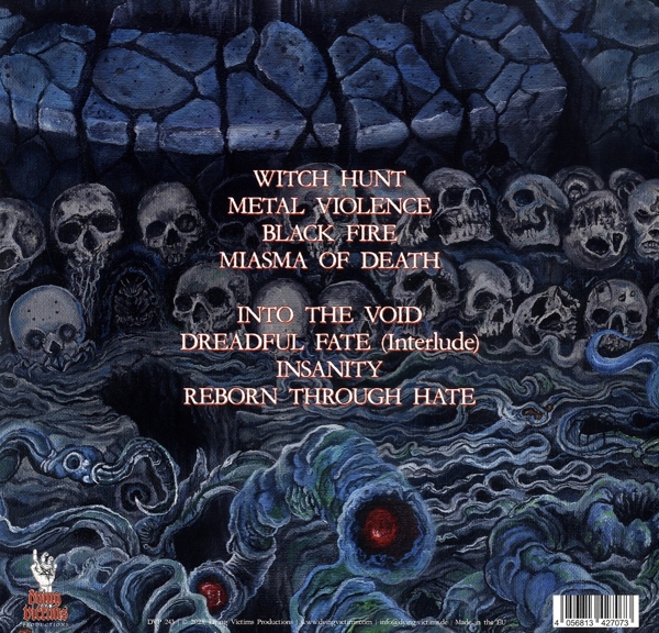 01. "Witch hunt" 02. "Metal violence" 03. "Black fire" 04. "Miasma of death" 05. "Into the void" 06. "Dreadful fate (Interlude)" 07. "Insanity" 08. "Reborn through hate"