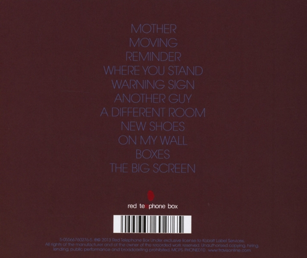 01. "Mother" 02. "Moving" 03. "Reminder" 04. "Where you stand" 05. "Warning sign" 06. "Another guy" 07. "A different room" 08. "New shoes" 09. "On my wall" 10. "Boxes" 11. "The big screen"