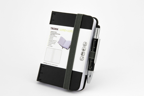 Beschreibung:Der Notizblock LILIPAD+LILIPUT TOOL PEN schwarz von Troika ist ein durchdachtes und stilvolles Set für Profis, Kreative und alle Menschen mit Sinn für Organisation und Designbewusstsein. Der hochwertige Notizblock im kompakten Format (ca. A7) eignet sich perfekt für schnelle Notizen unterwegs oder am Arbeitsplatz. Ergänzt wird er durch den innovativen LILIPUT TOOL PEN: Dieser multifunktionale Stift vereint Kugelschreiber, Touchscreen-Stylusspitze, Lineal sowie Schlitz- und Kreuzschlitzschraubendreher sowie eine Wasserwaage ? alles in einem eleganten schwarzen Metallgehäuse mit hoher Lebensdauer und edler Optik für Business oder Alltagseinsatz. TROIKA steht seit Jahren für Qualität und Funktionalität; darüber hinaus engagiert sich das Unternehmen aktiv im Bereich Nachhaltigkeit durch umweltfreundliche Produktionsverfahren sowie die Verwendung recycelbarer Materialien wann immer möglich. Mit dem Kauf dieses Produkts von TROIKA unterstützen Sie nicht nur Ihre eigene Produktivität sondern leisten auch einen Beitrag zum Umweltschutz.