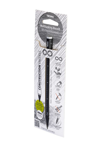 Der Multitasking-Bleistift CONSTRUCTION ENDLESS schwarz von Troika ist ein vielseitiges Schreibgerät für Profis und Kreative gleichermaßen. Gefertigt aus robustem Aluminium verfügt dieser Bleistift über eine endlose Graphitmine ? sie muss weder angespitzt noch nachgefüllt werden und garantiert so einen unterbrechungsfreien Arbeitsfluss sowie langanhaltende Nutzung. Das sechseckige Gehäuse sorgt für ergonomischen Halt und beherbergt praktische Werkzeuge wie Lineal (Zoll & Zentimeter), Stylus-Spitze für Touchscreens, Mini-Schraubendreher (Kreuz- & Schlitz) sowie eine Wasserwaage ? ideal für Büroalltag oder Außeneinsätze. Die mattschwarze Oberfläche verleiht dem Stift ein elegantes Erscheinungsbild in jeder Umgebung. Der Hersteller Troika steht seit Jahren für innovative Designs mit Fokus auf Funktionalität und Nachhaltigkeit: Langlebigkeit durch hochwertige Materialien und der Einsatz recycelbarer Komponenten sind zentrale Bestandteile ihrer Philosophie; Verpackungen werden reduziert und Logistikprozesse umweltbewusst gestaltet. Mit dem Kauf dieses Bleistifts leisten Sie Ihren Beitrag zu verantwortungsvoller Produktion ohne Kompromisse bei Qualität oder Stil.
