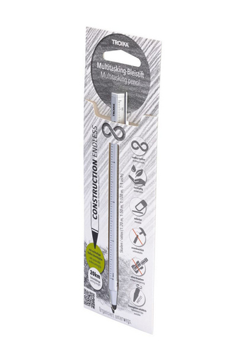 Der Multitasking-Bleistift CONSTRUCTION ENDLESS silber von Troika ist ein vielseitiges und innovatives Schreibgerät für Profis, Kreative und alle Anwender mit hohen Ansprüchen an Funktionalität im Alltag. Gefertigt aus hochwertigem Aluminium mit edler Silberoptik bietet dieser Bleistift eine endlose Graphitmine ? sie muss weder angespitzt noch nachgefüllt werden und ermöglicht bis zu 20 Kilometer Schreiblänge. Neben der Hauptfunktion als Bleistift verfügt das Werkzeug über integrierte Features wie Lineale (metrisch und imperial), einen Stylus für Touchscreens sowie Mini-Schraubendreher (Schlitz- und Kreuzschlitz) und eine Wasserwaage. Die sechseckige Form sorgt für ergonomischen Halt und verhindert das Wegrollen auf glatten Oberflächen. Der Hersteller Troika steht für Qualität ?Made in Germany? sowie nachhaltige Produktionsprozesse: Umweltfreundliche Materialien und langlebiges Design reduzieren Abfall nachhaltig. Mit dem Kauf dieses Produkts leisten Sie einen Beitrag zum Umweltschutz ? praktische Innovation trifft verantwortungsbewusstes Handeln.