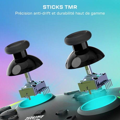 Technisch bietet der Controller eine kabellose Verbindung zur Nintendo Switch, sodass Sie ohne störende Kabel spielen können - ideal für das Spielen am Fernseher oder in flexibel gestalteten Wohnzimmer-Setups. Der Controller ist so gestaltet, dass er gut in der Hand liegt und die Gewichtsverteilung auch bei längeren Einsätzen angenehm bleibt. Die Tasten- und Stick-Anordnung ist auf das Nintendo-Switch-Layout abgestimmt, damit Sie schnell und intuitiv auf alle wichtigen Funktionen zugreifen können. Das widerstandsfähige Gehäuse ist für den regelmäßigen Einsatz ausgelegt und hält auch intensiveren Gaming-Sessions stand.
