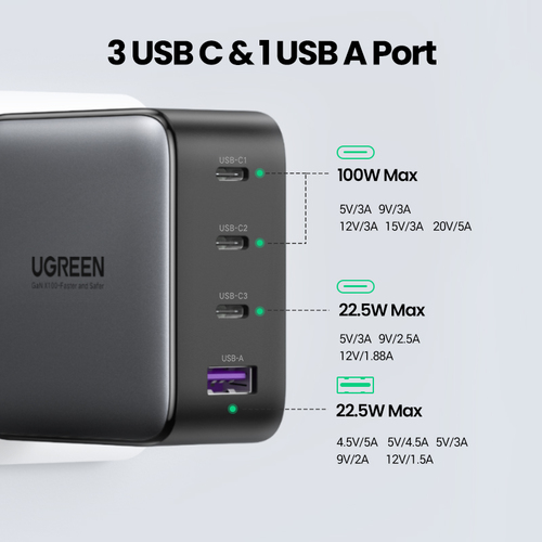 Ugreen 40747 Ladegerät für Mobilgeräte Universal Schwarz AC Schnellladung Drinnen