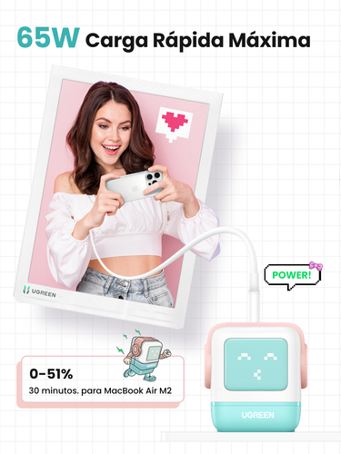 Ugreen Uno RG 65W 3-Port GaN Fast Charger pink blue Tragbarer Rechner, Handy, Laptop, Tablets, Telefon Blau AC Schnellladung Drinnen