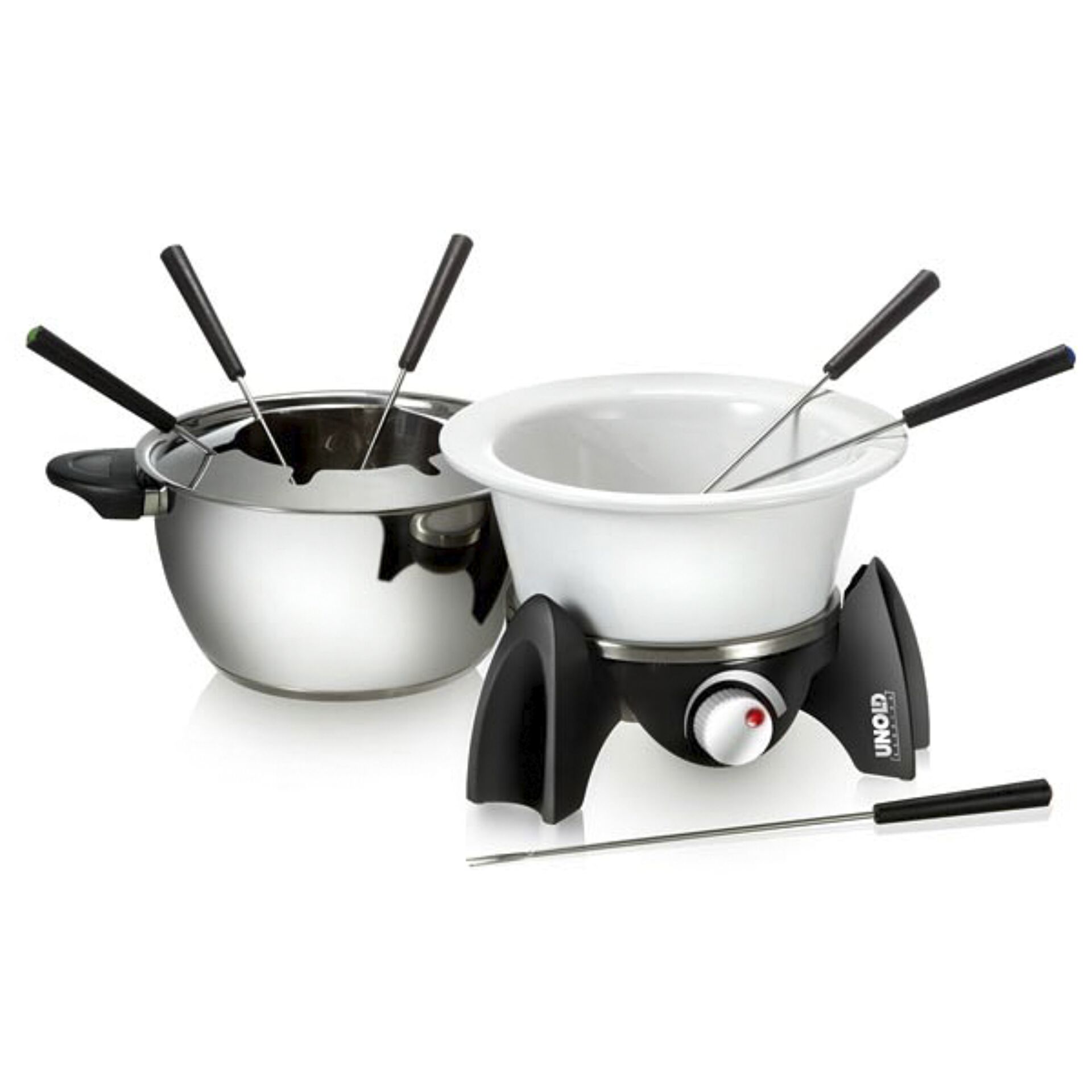 | Beschreibung: | edelstahl/schwarz, RetailFleisch-Fondue, Käse-Fondue und Schoko-FondueGabelhalterungEdelstahl-Fonduetopf, feuerfester Keramiktopf, antihaftbeschichtete Gussaluminiumplatte500 WattMultifunktionales FONDUE-SET für sechs Personen Alles in einem: Fleisch-Fondue, Käse-Fondue und Schoko-Fondue. Geht nicht? Geht doch - mit dem FONDUE-SET von UNOLD. Neben dem Edelstahl-Topf für das klassische Fleisch-Fondue gibt es jetzt noch einen obendrauf: Den formschönen, unverwüstlichen Keramiktopf, in dem Schokolade oder Käse super-sanft geschmolzen werden können. Nichts kann anbrennen, dank einem stufenlos regulierbaren Temperaturregler mit Kontrollleuchte. Und damit es der Tischplatte nicht zu heiß wird, steht das FONDUE-SET auf speziellen Cool-Touch-Füßen. Einen Spritzschutz aus Edelstahl mit Gabelhalterung macht die Sache perfekt. Hauptmerkmale Energie Energiebedarf 230 V~, 50Hz Leistung 500 W Farbe Produktfarbe Schwarz, Edelstahl, WeißWeee-Nr.: 39547139 |  | | Herstellernummer: |