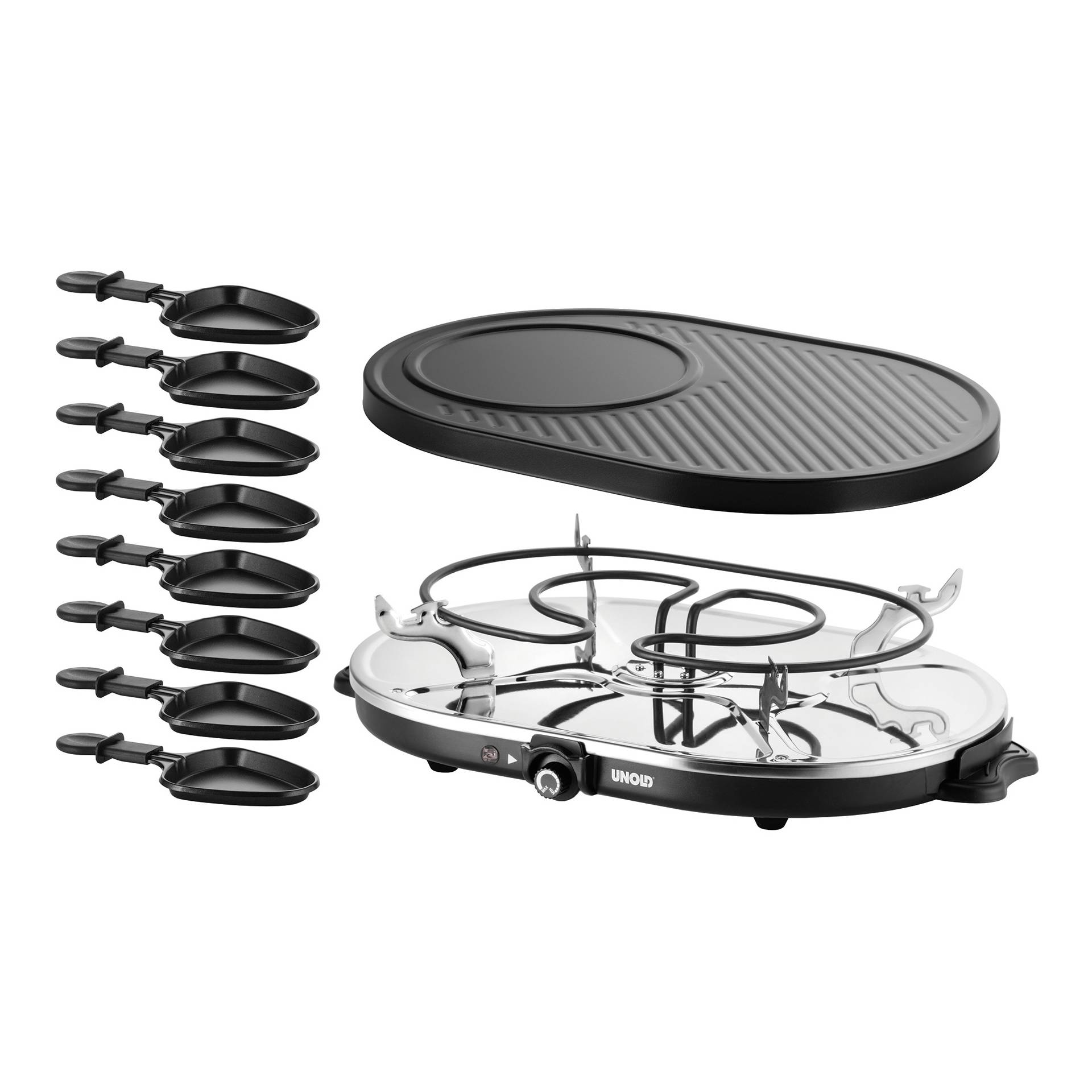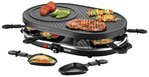 Der Artikel "Raclette Gourmet 48795" von der Marke Unold besitzt eine Eingangsspassung von 220 - 240 V, hat die Abmasse von Höhe HÖHE x Breite BREITE x Tiefe 475 mm und ist Schwarz. Das Produkt hat ein Gewicht von 2,2 kg. Es handelt sich bei dem Produkt um eine (n) Raclette.