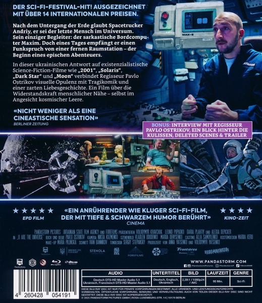 Bildgewaltige Mischung aus Sci-Fi, Tragikomödie und Liebesgeschichte: Nach dem Untergang der Erde denkt Spacetrucker Andriy, er sei der letzte Mensch im Universum. Sein einziger Begleiter: der sarkastische Bordcomputer Maxim. Doch eines Tages erhält er einen Funkspruch von einer fernen Raumstation ? der Anfang eines epischen Abenteuers. In dieser ukrainischen Antwort auf existenzialistische Science-Fiction-Filme wie ?2001?, ?Solaris?, ?Dark Star? und ?Moon? verbindet Regisseur Pavlo Ostrikov visuelle Opulenz mit Tragikomik und einer zarten Liebesgeschichte. Ein Film über die Widerstandskraft menschlicher Nähe ? selbst im Angesicht kosmischer Leere.