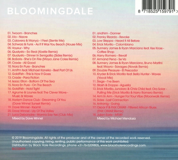 Disc 01 01. Twoom "Branches" 02. il:lo "Nacre" 03. Calavera & Manya "I feel (Siente me)" 04. Schwarz & Funk "As if it was you beach (House Mix)" 05. Voyeur "Why" 06. Qualysto "So real (Koelle Remix)" 07. Qualysto "Dinner in Senigallia (Sides Remix)" 08. BoSaris "She's on fire (Maya Jane Coles Remix)" 09. Crade "All good" 10. Nora En Pure "Branches" 11. AmPm / Kaneko, Michael "Best part of us" 12. Goldfish "This Is How It Goes" 13. Cradle "Para fiction" 14. Elton, Isaac "Bottom of the sea" 15. Nora En Pure "On the beach" 16. Goldfish "Hold Tight" 17. Agrume & Lounes / Clever Move, The "Music & waves" 18. Harlem Dance Club "Dreaming of you (Dave Winnel Sunset Remix)" 19. Winnel, Dave "Ksamil" 20. Winnel, Dave "Lily of the valley" 21. Debonaire, Luca "Wanna say yes (Club Mix)"