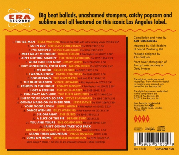 01. Watkins, Billy "The ice-man" 02. Robertson, Othello "So in luv" 03. Flanagan, Steve "I've Arrived" 04. Cloud, Bruce "meet me at midnight" 05. Turn Arounds, The "Ain't nothing shakin'" 06. Lewis, Jimmy "What can I do" 07. Boyd, Melvin "Exit loneliness, enter love" 08. Cloud, Bruce "My book" 09. Connors, Carol "I wanna know" 10. Lovemates, The "Boomerang" 11. Howard, Vince "The blue shadow" 12. Mosley, Tommy "Echoes in the night" 13. Soul-Mates, The "I get a feeling" 14. Turn Arounds, The "Run away and hide" 15. Flanagan, Steve "I need to be loved so bad" 16. Davis, Jesse "Gonna hang on in there girl" 17. Akens, Jewel "Your good lovin'" 18. Watkins, Billy "Dance with me" 19. Elites, The "Sir Galahad" 20. Byrd, Bernie "A slice of the pie" 21. Composers, The "You and yours" 22. Holloway, Brenda / Carrolls, The "I ain't gonna take you back" 23. Howard, Vince "Stand there mountain" 24. Robertson, Othello "Come on home"
