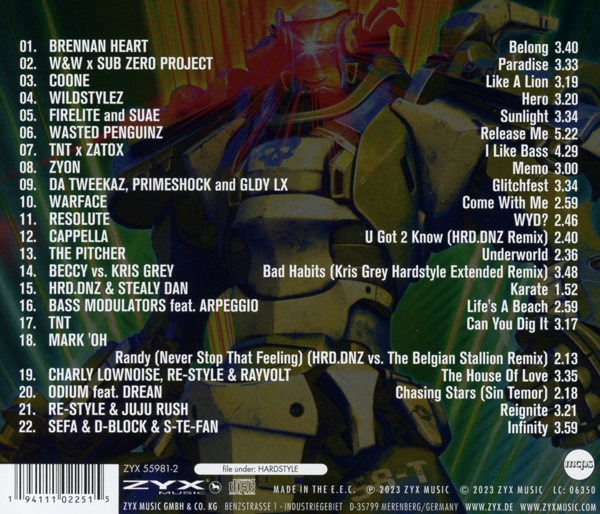 01. Heart, Brennan "BELONG" 02. W&W X SUB ZERO PROJECT "PARADISE" 03. COONE "LIKE A LION" 04. WILDSTYLEZ "HERO" 05. FIRELITE AND SUAE "SUNLIGHT" 06. WASTED PENGUINZ "RELEASE ME" 07. TNT X ZATOX "I LIKE BASS" 08. ZYON "MEMO" 09. DA TWEEKAZ, PRIMESHOCK AND GLDY LX "GLITCHFEST" 10. WARFACE "COME WITH ME" 11. RESOLUTE "WYD?" 12. CAPPELLA "U GOT 2 KNOW, (HRD.DNZ Remix)" 13. Pitcher, The "UNDERWORLD" 14. BECCY VS. KRIS GREY "BAD HABITS, (Kris Grey Hardstyle Extended Remix)" 15. HRD.DNZ & STEALY DAN "KARATE" 16. BASS MODULATORS FEAT. ARPEGGIO "LIFE S A BEACH" 17. TNT "CAN YOU DIG IT" 18. MARK OH "RANDY (NEVER STOP THAT FEELING), (HRD.DNZ vs. The Belgian Stallion Remix)" 19. CHARLY LOWNOISE, RE-STYLE & RAYVOLT "THE HOUSE OF LOVE" 20. ODIUM FEAT. DREAN "CHASING STARS (SIN TEMOR)" 21. RE-STYLE & JUJU RUSH "REIGNITE" 22. SEFA & D-BLOCK & S-TE-FAN "INFINITY"