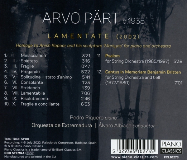 Lamentate (Hommage an Anish Kapoor und seine Skulptur Marsyas) (für Klavier und Orchester) (2002)