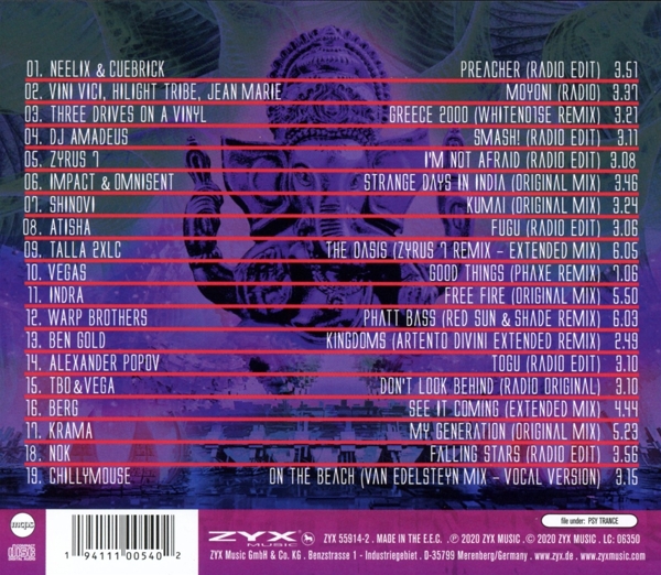 01. NEELIX & CUEBRICK "PREACHER, (Radio Edit)" 02. VINI VICI, HILIGHT TRIBE, JEAN MARIE "MOYONI, (Radio)" 03. THREE DRIVES ON A VINYL "GREECE 2000, (WHITENO1SE Remix)" 04. DJ AMADEUS "SMASH!, (Radio Edit)" 05. ZYRUS 7 "I M NOT AFRAID, (Radio Edit)" 06. IMPACT & OMNISENT "STRANGE DAYS IN INDIA, (Original Mix)" 07. SHINOVI "KUMAI, (Original Mix)" 08. ATISHA "FUGU, (Radio Edit)" 09. TALLA 2XLC "THE OASIS, (Zyrus 7 Remix - Extended Mix)" 10. VEGAS "GOOD THINGS, (Phaxe Remix)" 11. INDRA "FREE FIRE, (Original Mix)" 12. WARP BROTHERS "PHATT BASS, (Red Sun & Shade Remix)" 13. BEN GOLD "KINGDOMS, (Artento Divini Extended Remix)" 14. ALEXANDER POPOV "TOGU, (Radio Edit)" 15. TBO&VEGA "DON T LOOK BEHIND, (Radio Original)" 16. BERG "SEE IT COMING, (Extended Mix)" 17. KRAMA "MY GENERATION, (Original Mix)" 18. NOK "FALLING STARS, (Radio Edit)" 19. CHILLYMOUSE "ON THE BEACH, (Van Edelsteyn Mix - Vocal Version)"