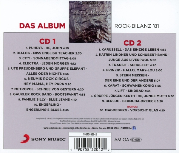 Beschreibung:Coordinator [Redaktion]: Volkmar Andrä, Design: Preuße & Hülpüsch Grafik-Design, Photography: FF DABEI - Golke, Photography By: Bernd Lammel, Photography By: Bernd Scheubert, Photography By: Günter Gueffroy, Photography By: Michael Arnold (4), Photography By: Stefan Hessheimer, Photography By, Illustration: Monika Prust, Recorded By: Rundfunk Der DDR, Composed By, Arranged By: Dieter Birr, Composed By, Arranged By: Peter Meyer (3), Lyrics By: Burkhard Lasch, Composed By, Arranged By: Dialog (2), Lyrics By: Kurt Demmler, Composed By, Arranged By: Georgi Gogow, Lyrics By: Toni Krahl, Composed By, Arranged By: Bernd Aust, Lyrics By: Hartmut Egk, Composed By, Arranged By: Bodo Huth, Lyrics By: Burkhard Lasch, Composed By, Lyrics By, Arranged By: Hans Joachim Neumann, Composed By: Reinhard Tesch, Lyrics By: Harry Balkow-Gölitzer, Composed By, Arranged By: Joachim Kielpinski, Lyrics By: Werner Karma, Composed By, Arranged By: Thomas Fritzsching, Lyrics By: Kurt Demmler, Composed By, Lyrics By, Arranged By: Wolfram Bodag, Arranged By: Karussell, Composed By: Bernd Dünnebeil, Lyrics By: Kurt Demmler, Composed By, Arranged By: Sieghart Schubert, Lyrics By: Ingeburg Branoner, Composed By, Lyrics By, Arranged By: Siegfried Scholz, Composed By, Lyrics By, Arranged By: Prinzip, Composed By, Arranged By: Thomas Kurzhals, Lyrics By: Kurt Demmler, Composed By, Arranged By: Ulrich Swillms, Lyrics By: Norbert Kaiser, Composed By, Arranged By: Wolfgang Scheffler, Lyrics By: Andreas Reimann, Composed By, Lyrics By, Arranged By: Jürgen Kerth, Arranged By: Berluc, Composed By: Gerd Pöppel, Lyrics By: Kurt Demmler, Labelcode AMGA8320427.2 (19075832042, 19075832042), Distributed By Sony Music Entertainment, Phonographic Copyright (p) Sony Music Entertainment (Germany) GmbH, Copyright (c) Sony Music Entertainment (Germany) GmbH, Manufactured By Optimal Media GmbH