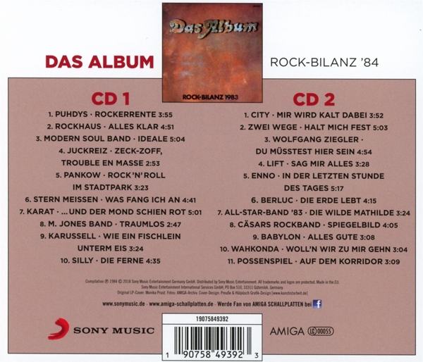 Beschreibung:Cover [Original LP-Cover]: Monika Prust, Design [Cover Design]: Preuße & Hülpüsch Grafik-Design, Photography: AMIGA-Archiv, Composed By: Dieter Birr, Composed By: Peter Meyer (3), Lyrics By: Dieter Birr, Composed By: Rockhaus, Lyrics By: Mike Kilian, Lyrics By: Toni Krahl, Composed By: Gerhard Laartz, Lyrics By: Michael Sellin, Composed By: Jürgen Rohmeis, Lyrics By: Friedhelm Ruschak, Lyrics By: Marion Sprawe, Composed By: Jürgen Ehle, Lyrics By: Jürgen Ehle, Composed By: Ralf Schmidt, Lyrics By: Ralf Schmidt, Composed By: Ulrich Swillms, Lyrics By: Norbert Kaiser, Composed By: Martin Jones (7), Lyrics By: Werner Karma, Composed By: Jochen Hohl, Lyrics By: Kurt Demmler, Composed By: Silly, Lyrics By: René Volkmann, Composed By: City (3), Lyrics By: City (3), Composed By: Wolf Suckow, Lyrics By: Hans-Christian Schmidt (2), Lyrics By: Tomi Lehmann, Composed By: Wolfgang Ziegler, Lyrics By: Fred Gertz, Composed By: Michael Heubach, Lyrics By: Michael Heubach, Composed By: Georgi Gogow, Lyrics By: Werner Karma, Composed By: Alexander Stehr, Lyrics By: Burkhard Lasch, Composed By: Mathias Schramm, Lyrics By: René Volkmann, Composed By: Jürgen Dinter, Lyrics By: Elisabeth Pfeifer, Composed By: Dieter Wiesjahn, Lyrics By: Detlef Volquardsen, Lyrics By: Dieter Wiesjahn, Composed By: Bernd Lehmann, Lyrics By: Fred Gertz, Composed By: Hans Knippenberg, Lyrics By: Detlef Topolinski, Labelcode AMGA8493923.2 (19075849392, 19075849392), Distributed By Sony Music Entertainment, Phonographic Copyright (p) Sony Music Entertainment (Germany) GmbH, Copyright (c) Sony Music Entertainment (Germany) GmbH, Manufactured By Optimal Media GmbH
