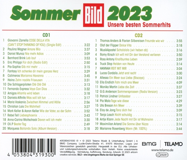 Beschreibung:Artwork By: Artcom Creative Services, Photography By: Ilias Petszokat, Photography By: Kerstin Joensson, Photography By: Lars Laion, Photography By: Marcel Brell, Photography By: Sandra Ludewig, Lyrics By: Adelio Cogliati, Lyrics By: Eros Ramazzotti, Music By: Pierangelo Cassano, Music By, Lyrics By: Benjamin Brümmer, Music By, Lyrics By: Christopher Gronau, Music By, Lyrics By: Christina Baumann, Music By, Lyrics By: Daniel Muñoz, Music By, Lyrics By: Ricardo Munoz Repko, Music By, Lyrics By: Simon Allert, Music By, Lyrics By: Terence Olivier, Lyrics By: Sebastian Steinhauser, Music By: Petra Bonmassar, Music By, Lyrics By: Eike Staab, Music By, Lyrics By: Eric Philippi, Music By, Lyrics By: Dan Sommer, Music By, Lyrics By: Ludvic, Music By, Lyrics By: Wilderich Fuchs, Music By, Lyrics By: Dirk Berns, Music By, Lyrics By: Matthias Teriet, Music By, Lyrics By: Stefan Pössnicker, Music By, Lyrics By: Kurt Schoger, Music By, Lyrics By: Marvin Trecha, Music By: Clemens Winterhalter, Music By, Lyrics By: Lou Richter, Lyrics By: Alexander Scholz, Music By, Lyrics By: Hens Hensen, Music By, Lyrics By: Helmut Hirner, Music By, Lyrics By: Matthias Teriet, Music By, Lyrics By: Peter Werba, Music By, Lyrics By: Michael Martin Hecht, Lyrics By: Bernd Ulrich, Music By: Michael Dorth, Music By, Lyrics By: Meri Voskanian, Music By, Lyrics By: Paul Falk (2), Music By, Lyrics By: Tim Peters (3), Music By, Lyrics By: Diane Weigmann, Music By, Lyrics By: Hubert Molander, Music By, Lyrics By: Claudio Pagonis, Music By, Lyrics By: Mark Keller, Music By, Lyrics By: Tobias Röger, Lyrics By: Daniel Lackmann, Music By, Lyrics By: Frank Pürzer, Music By, Lyrics By: Lukas Lach, Music By, Lyrics By: Michael Bencsics, Music By, Lyrics By: Hens Hensen, Music By, Lyrics By: Matthias Teriet, Music By, Lyrics By: Terence Olivier, Music By, Lyrics By: Berislaw Audenaerd, Music By, Lyrics By: Jan Niklas Simonsen, Music By, Lyrics By: Jan van der Toorn, Music By, Lyrics By: Oliver Petszokat, Music By, Lyrics By: Vivien Behr, Music By, Lyrics By: Christian Fleps, Music By, Lyrics By: Dominik Decker, Music By, Lyrics By: Jose Rafael Vasquez Ruiz, Music By, Lyrics By: Sascha Pierro, Music By, Lyrics By: Katharina Schwarz (2), Music By, Lyrics By: Paul Falk (2), Music By, Lyrics By: Tim Peters (3), Lyrics By: Erdmann Lange, Music By, Lyrics By: Joschi Dinier, Music By, Lyrics By: Ewald Felbar, Music By, Lyrics By: Mark Bender, Music By, Lyrics By: Stefan Felbar, Lyrics By: Anja Krabbe, Music By, Lyrics By: André Stade, Music By, Lyrics By: Bernhard Wittgruber, Music By, Lyrics By: Sotiria Schenk, Music By, Lyrics By: Terence Olivier, Music By, Lyrics By: Katrin Schröder, Music By, Lyrics By: Peter Koobs, Lyrics By: Hannah Hofer, Lyrics By: Norbert Lambauer, Music By: Henning Verlage, Music By: Willy Michael Willmann, Music By, Lyrics By: Christian Geller, Music By, Lyrics By: Christoph Assmann, Lyrics By: Marc Hiller, Lyrics By: Tony O'Melley, Music By: Howard O'Melley, Music By: William Bookwood, Music By, Lyrics By: Ella Endlich, Music By, Lyrics By: Jovanka von Willsdorf, Music By, Lyrics By: Matthias Heising, Lyrics By: Tobias Reitz, Music By: Wolfgang Herrmann, Music By, Lyrics By: Benjamin Brümmer, Music By, Lyrics By: Kurt Schoger, Music By: Alexander Scholz, Music By: Hens Hensen, Lyrics By: Andreas Frege, Lyrics By: Birgit Minichmayr, Music By: Andreas Von Holst, Lyrics By: Andrea Gutmann, Music By: André Stade, Music By, Lyrics By: Uta Bresan, Lyrics By: Alexander Scholz, Music By: Hens Hensen, Lyrics By: Tanja Lasch, Music By: Marvin Trecha, Music By, Lyrics By: Anya Mahnken, Music By, Lyrics By: Armin Pertl, Music By, Lyrics By: Christoph Leis-Bendorff, Music By, Lyrics By: Hubert Molander, Lyrics By: Uwe Gerundt, Music By, Lyrics By: Tom Marquardt, Music By: Max Rosenberg (2), Music By, Lyrics By: Marianne Rosenberg, Labelcode 405380431930, Phonographic Copyright (p) Telamo Musik & Unterhaltung GmbH, Copyright (c) Telamo Musik & Unterhaltung GmbH, Glass Mastered At Kdg, Pressed By Kdg