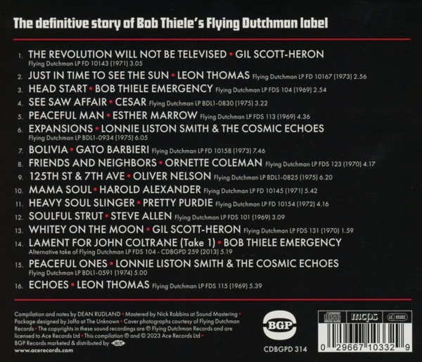 1.1 The Revolution Will Not Be Televised - Gil Scott-Heron1.2 Just in Time to See the Sun - Leon Thomas1.3 Head Start - Bob Thiele Emergency1.4 See Saw Affair - Cesar1.5 Peaceful Man - Esther Marrow1.6 Expansions - Lonnie Liston Smith ; the Cosmic Echoes1.7 Bolivia - Gato Barbieri1.8 Friends and Neighbors - Ornette Coleman1.9 125th St ; 7th Ave - Oliver Nelson1.10 Mama Soul - Harold Alexander1.11 Heavy Soul Slinger - Pretty Purdie1.12 Soulful Strut - Steve Allen1.13 Whitey on the Moon - Gil Scott-Heron1.14 Lament for John Coltrane (Take 1) - Bob Thiele Emergency1.15 Peaceful Ones - Lonnie Liston Smith ; the Cosmic Echoes1.16 Echoes - Leon Thomas |