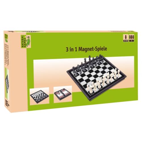 Warnhinweis: Natural Games 3 in 1 Magnetspiel. Für Dame, Schach und Backgammon. Ideal auch für unterwegs. Maße ca. 32x32x2 cm. Für Kinder ab 8 Jahren.