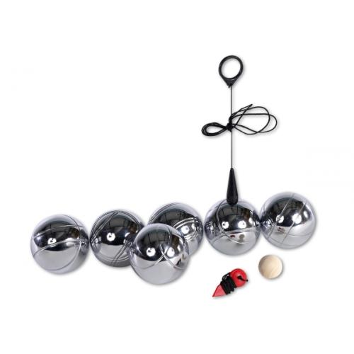 Zusatzbeschreibung: Set mit 6 Metallkugeln, Magneten zum Aufheben der Kugeln und Nylontasche. Für Strand und Garten. Kugel # ca. 73 mm.