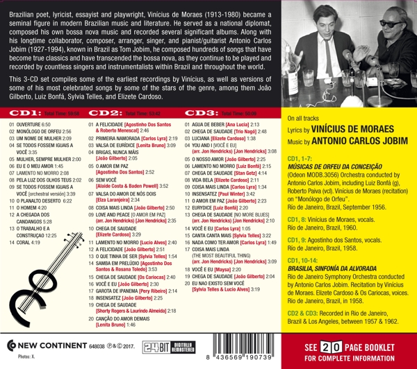 | | Beschreibung: | Lyrics By: Vinicius De Moraes, Music By: Antonio Carlos Jobim, Vocals: Vinicius De Moraes, Vocals: Agostinho Dos Santos, Guitar: Roberto Menescal, Vocals: Agostinho Dos Santos, Vocals: Carlos Lyra, Vocals: Lenita Bruno, Vocals: João Gilberto, Vocals: Agostinho Dos Santos, Guitar: Baden Powell, Vocals: Alaide Costa, Vocals: Elza Laranjeira, Vocals: João Gilberto, Arranged By, Vocals: Jon Hendricks, Guitar: Antonio Carlos Jobim, Guitar: João Gilberto, Vocals: Elizeth Cardoso, Vocals: Lúcio Alves, Vocals: João Gilberto, Vocals: Sylvia Telles, Vocals: Agostinho Dos Santos, Vocals: Rosana Toledo, Vocals: Os Cariocas, Piano: Antonio Carlos Jobim, Vocals, Guitar: João Gilberto, Vocals: Pery Ribeiro, Vocals: João Gilberto, Guitar: Laurindo Almeida, Trumpet: Shorty Rogers, Vocals: Lenita Bruno, Vocals: Ana Lucia (2), Vocals: Trio Nagô, Vocals: Elizeth Cardoso, Arranged By, Vocals: Jon Hendricks, Vocals: João Gilberto, Guitar: Luiz Bonfá, Saxophone: Stan Getz, Vocals: Elizeth Cardoso, Vocals: Carlos Lyra, Violin: Paul Winter, Vocals: João Gilberto, Guitar: Luiz Bonfá, Arranged By, Vocals: Jon Hendricks, Vocals: Carlos Lyra, Vocals: Sylvia Telles, Vocals: Carlos Lyra, Arranged By, Vocals: Jon Hendricks, Vocals: Maysa Matarazzo, Vocals: João Gilberto, Vocals: Lúcio Alves, Vocals: Sylvia Telles, Labelcode IMT9190739.2 (648038) |  | | Herstellernummer: |