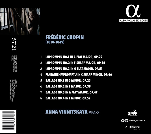 01. "Ballade No.1 in G minor, Op.23" 02. "Ballade No.2 in F major, Op.38" 03. "Ballade No.3 in A flat major, Op.47" 04. "Ballade No.4 in F minor, Op.52" 05. "Impromptu No.1 in A flat major, Op.29" 06. "Impromptu No.2 in F sharp major, Op.36" 07. "Impromptu No.3 in G flat major, Op.51" 08. "Fantaisie-impromptu in C sharp minor, Op.66"
