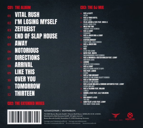 Disc 02 01. Vize / Alott "Vital rush (Extended Mix)" 02. Vize / Alott "I'm losing myself (Extended Mix)" 03. Vize / Alott "Zeitgeist (Extended Mix)" 04. Vize / Alott "End of slaphouse (Extended Mix)" 05. Vize / Alott "Away (Extended Mix)" 06. Vize / Alott "Notorious (Extended Mix)" 07. Vize / Alott "Directions (Extended Mix)" 08. Vize / Alott "Arrival (Extended Mix)" 09. Vize / Alott "Like this (Extended Mix)" 10. Vize / Alott "Over you (Extended Mix)" 11. Vize / Alott "Tomorrow (Extended Mix)" 12. Vize / Alott "Thirteen (Extended Mix)"
