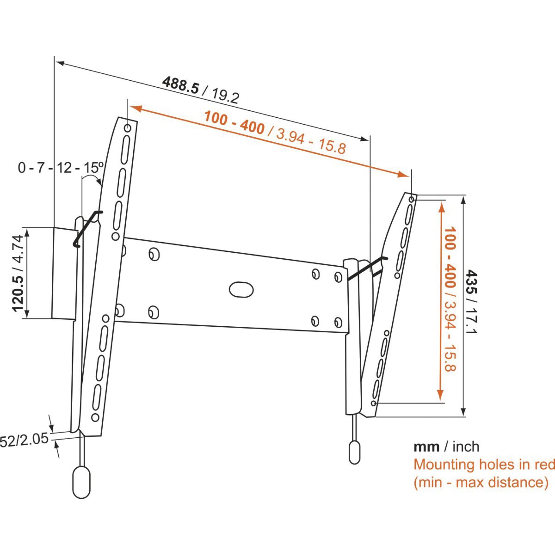 Details: Allgemein Farbe Schwarz Möbel für audiovisuelle Geräte Typ Wandhalterung Montagekomponenten Wandmontage Empfohlene Verwendung Plasma/LCD/TV VESA-Halterung 100 x 100 mm, 400 x 400 mm Max. Größe des Befestigungsmusters 48.85 x 42 mm Empfohlene Display-Größe 81.3-139.7 cm (32"-55") Anpassungen Neigung Max. Ladegewicht 30 kg