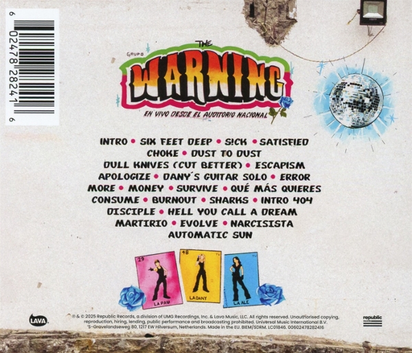 ?Live from Auditorio Nacional CDMX? ist ein mitreißendes Live-Album der gefeierten mexikanischen Rockband The Warning und erscheint im CD-Format beim Label Republic. Das Konzert wurde im legendären Auditorio Nacional von Mexiko-Stadt aufgenommen und fängt die rohe Energie sowie die beeindruckende Bühnenpräsenz der Band ein ? inklusive ihrer größten Hits und Fanlieblinge in dynamischen Versionen voller Leidenschaft und Power-Riffs. Dieses Album unterstreicht nicht nur das musikalische Können des Trios auf eindrucksvolle Weise; es festigt auch ihren Status als eine der spannendsten zeitgenössischen Rockbands Lateinamerikas.