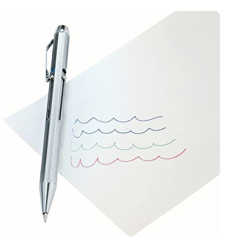 Beschreibung:Hauptmerkmale Funktionen Bauart Anklippbarer versenkbarer Stift Schreibfarbe Schwarz, Blau, Grün, Rot Produktfarbe Chrom Gewicht & Abmessungen Breite 135 mm Tiefe 19 mm Höhe 9 mm Verpackungsinhalt Menge pro Packung 1 Stück(e)
