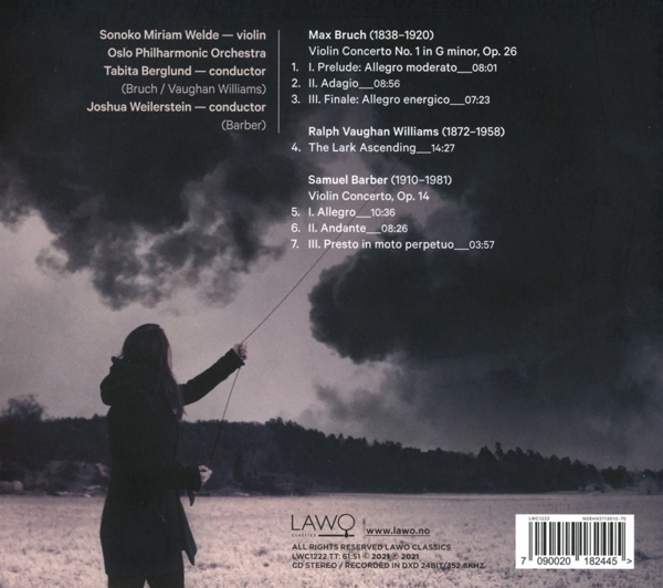 Beschreibung:Sonoko Miriam Welde writes: "When you ask people which superpower they would choose if they could have only one, many answer that they would want the power of flight. Although I personally would prefer invisibility, I also think there is something enviable about the freedom of being able to fly... A lot has been said and written about how Vaughan Williams wrote The Lark Ascending during the 1st World War "when a pastoral scene of a singing bird on the wing seemed far removed from reality" (Betsy Schwarm, Britannica). I sometimes imagine people living through difficult times looking up at the lark, envying it's life and freedom that they wish they had. It's a moving piece with soaring melodies and the lark's "silver chain of sound." Soaring melodies are present in Barber's Concerto as well. Although it opens with a generous and warm melody, it doesn't take long for uncertainty to creep in, and large sections of the 1st movement are dominated by an "in-between" kind of feeling - in addition to the unbelievably triumphant and satisfying return of the opening theme of course! The 2nd movement is, for me, one of the most touching and heartbreaking pieces of music. It reminds me of Somewhere from West Side Story. Hope, pain and perhaps longing for something better. It is just endlessly beautiful... Bruch's Violin Concerto is a piece with it's heart on it's sleeve. The 1st movement is a very serious and dramatic introduction, the 2nd incredibly touching and sincere, and the 3rd so joyous and life affirming. This piece has accompanied me in many important and special moments in my life so far and I am so happy that it is with me in this one as well - my debut album with the Oslo Philharmonic, a fantastic group of musicians that I have loved and admired for many years!", Runningtime: 00:00:00, : , Composed By: Max Bruch, Composed By: Ralph Vaughan Williams, Composed By: Samuel Barber, Labelcode LAWO1222.2 (LWC 1222), Phonographic Copyright (p) Lawo, Copyright (c) Lawo Classics, Recorded At Oslo Konserthus