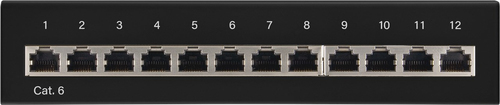 Goobay CAT 6 Mini/Desktop Patch Panel, 12 Port, Schwarz - STP geschirmt, Schwarz (69307)