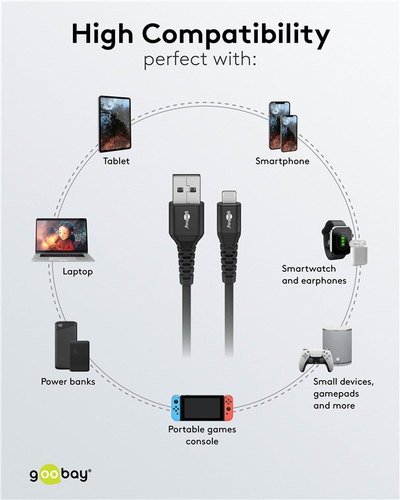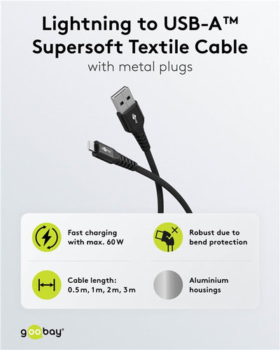 Goobay Lightning auf USB-A Supersoftes Textilkabel mit Metallsteckern, 0,5 m (74485)
