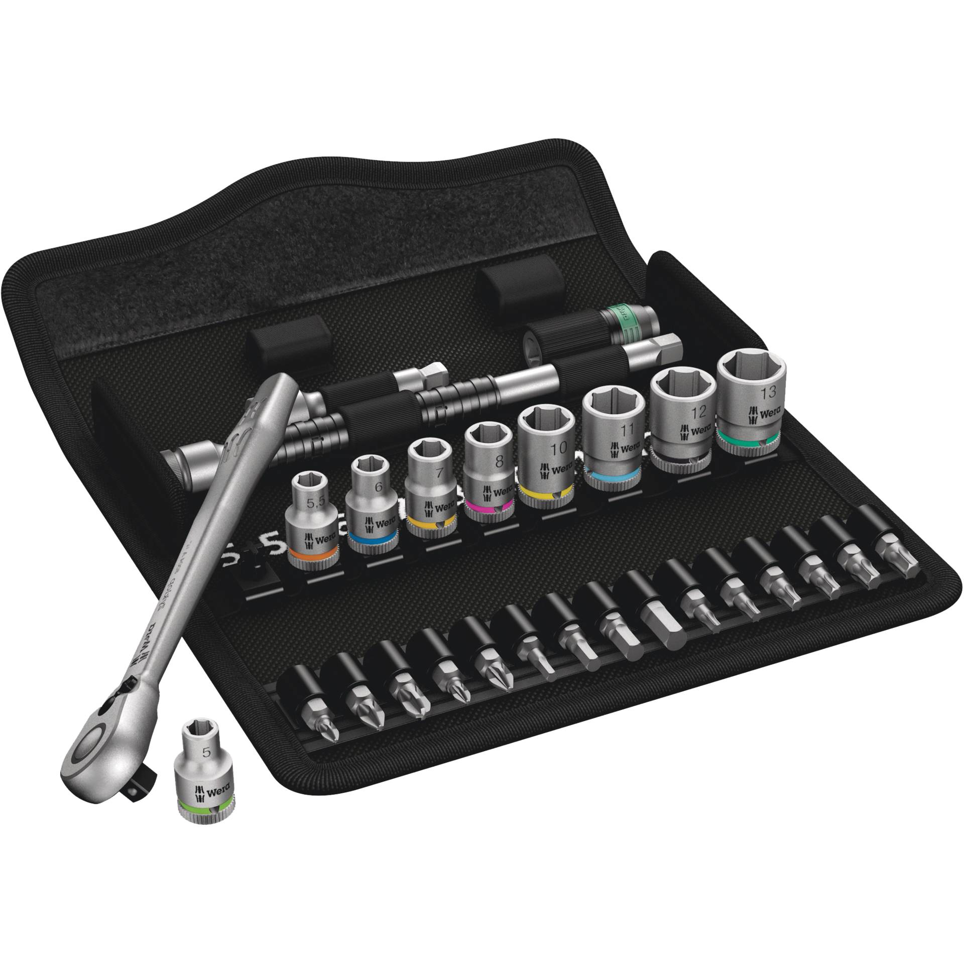 | Allgemeine Daten | | Gewicht in g | 696 | | Farbe | silber | | Material(ien) | Metall | | Anzahl Teile | 28 | | Set | Ja | | Anwendungsbereich | universell | | Eigenschaft(en) | | Antriebsgröße (Zoll) | 1/4 | | Antriebsart | Außenvierkant | | Rückschwenkwinkel (°) | 5 | | Anzahl Zähne | 72 | | Typ(en) | | Typ(en) | Ratschen-Satz | | Produkt-Features | | Feature 6 | plusminus-pozidriv | | Feature 2 | aussenvierkant |