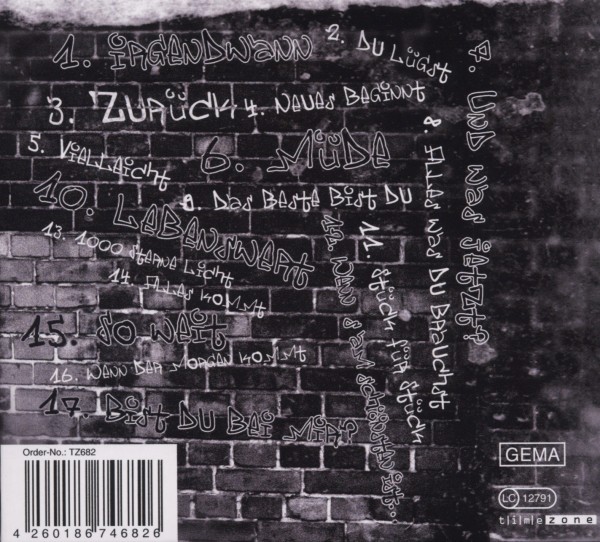 01. "Irgendwann" 02. "Du lügst" 03. "Zurück" 04. "Neues beginnt" 05. "Vielleicht" 06. "Müde" 07. "Und was jetzt?" 08. "Alles was du brauchst" 09. "Das Beste bist du" 10. "Lebenswert" 11. "Stück für Stück" 12. "Wenn's am sch?nsten ist..." 13. "1000 Sterne Licht" 14. "Alles kommt" 15. "So weit" 16. "Wenn der Morgen kommt" 17. "Bist du bei mir?"