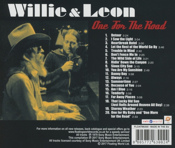 01. "Detour" 02. "I Saw The Light" 03. "Heartbreak Hotel" 04. "Let the rest of the world go by" 05. "Trouble In Mind" 06. "Don't fence me in" 07. "The wild side of life" 08. "Ridin' down the canyon" 09. "Sioux city Sue" 10. "You are my sunshine" 11. "Danny boy" 12. "Always" 13. "Summertime" 14. "Because of you" 15. "Am I blue" 16. "Tenderly" 17. "Far away places" 18. "That lucky old sun (Just rolls around heaven all day)" 19. "Stormy weather" 20. "One For My Baby (And One More For The Road)"