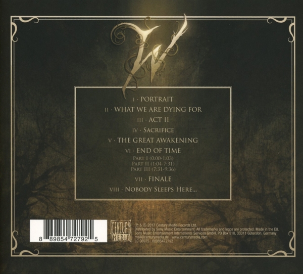 01. "Portrait" 02. "What We Are Dying For" 03. "Act II" 04. "Sacrifice" 05. "The Great Awakening" 06. "End Of Time" 07. "Finale" 08. "Nobody Sleeps Here"