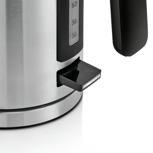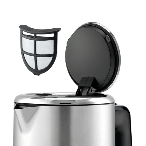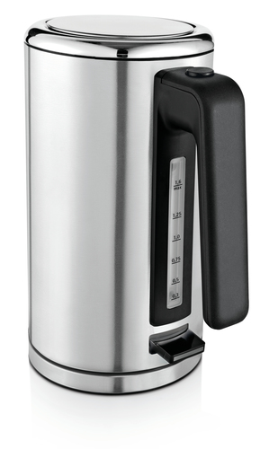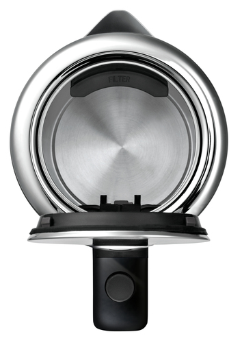Beschreibung Das Gehäuse aus Cromargan® Voll-Edelstahl kombiniert gebürstete Oberflächen mit hochglänzenden Elementen. Dieser hochwertige, kabellose Wasserkocher verfügt über ein Fassungsvermögen von 1,6 Liter. Die Wasserstandsanzeige ist außenliegend und gut sichtbar. Mit 2.400 Watt bringt er das Wasser in kürzester Zeit zum Kochen. Das verdeckte Edelstahlheizelement ermöglicht das Erhitzen von geringen Wassermengen und erleichtert die Reinigung. Der separate Gerätesockel versteckt die integrierte Kabelaufwicklung. Trockenlauf- und Überhitzungsschutz, Kochstoppautomatik und Deckelverriegelung ren die nötige Sicherheit. Features Cromargan matt Kabelloser Wasserkocher mit separatem Gerätesockel inkl. Kabelaufwicklung Einhanddeckelöffnung per Knopfdruck Außenliegende Wasserstandsanzeige Verdecktes Edelstahlheizelement 2.400 Watt Leistung max. Fassungsvermögen: 1,6 l Herausnehmbarer, abwaschbarer Kalk-Wasserfilter Hohe Sicherheit durch Trockenlauf- und Überhitzungsschutz, Kochstoppautomatik