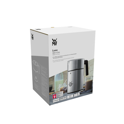Der LONO Milk & Choc Milchaufschäumer von WMF ist ein vielseitiges und hochwertiges Gerät zur Zubereitung von cremigem Milchschaum, heißer Schokolade sowie warmer oder kalter Milchgetränke. Mit einem großzügigen Fassungsvermögen von 350 ml lassen sich mehrere Portionen gleichzeitig zubereiten ? ideal für Familien oder Gästeempfang. Das Gerät bietet eine intuitive Ein-Knopf-Bedienung mit vier Programmen: luftiger Milchschaum (heiß/kalt), heiße Schokolade aus echten Schokoladenstückchen und das einfache Erwärmen von Milch. Der doppelwandige Edelstahlbehälter sorgt für optimale Temperaturhaltung und bleibt außen angenehm kühl; die herausnehmbaren Teile sind spülmaschinengeeignet und erleichtern so die Reinigung erheblich. WMF ist als renommierter deutscher Hersteller bekannt für langlebige Küchengeräte aus hochwertigem Cromargan®-Edelstahl ? ein Material, das rostfrei ist und dauerhaft glänzt. Das Unternehmen legt großen Wert auf Nachhaltigkeit durch energieeffiziente Produktionsprozesse sowie den Einsatz recycelbarer Materialien bei seinen Produkten. Mit dem Kauf dieses Produkts unterstützen Kunden umweltbewusste Herstellungsverfahren und profitieren zugleich im Alltag von höchster Qualität. Mit dem LONO Milk & Choc bereiten Sie mühelos Barista-Getränke zu Hause zu ? vom Cappuccino am Morgen bis zur heißen Schokolade am Abend ? alles mit wenig Aufwand und bestem Geschmackserlebnis! Ihr Kauf trägt nicht nur zum Genuss bei Ihnen zuhause bei, sondern auch aktiv zum Umweltschutz dank der nachhaltigen Philosophie von WMF.