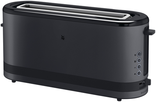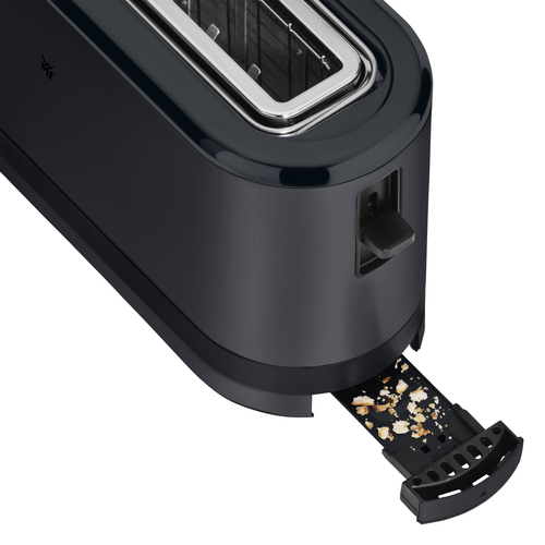 Der WMF KÜCHENminis Deep Black Langschlitz-Toaster ist ein kompakter und leistungsstarker Küchenhelfer für moderne Haushalte. Mit seinem eleganten Gehäuse aus tiefschwarzem Cromargan-Edelstahl überzeugt er durch Langlebigkeit und einfache Reinigung sowie stilvolles Design auf jeder Arbeitsfläche. Der extra lange Schlitz ermöglicht das Toasten von zwei Brotscheiben nebeneinander oder auch längeren Backwaren wie Baguette oder Sandwichbrot ? ideal für vielfältige Anwendungen beim Frühstück oder Snack zwischendurch! Zu den technischen Highlights zählen sieben individuell einstellbare Bräunungsgrade, eine integrierte Brötchenauflage zum Aufbacken von Gebäckstücken sowie Auftau- und Aufwärmfunktionen für gefrorenes Brot bzw. bereits getoastete Scheiben; die herausnehmbare Krümelschublade erleichtert zudem die Reinigung erheblich und der praktische High-Lift-Mechanismus sorgt dafür, dass selbst kleine Brotscheiben sicher entnommen werden können ohne sich zu verbrennen. Als Traditionsunternehmen mit über 160 Jahren Erfahrung steht WMF nicht nur für höchste Qualität ?Made in Germany?, sondern engagiert sich auch aktiv im Bereich Nachhaltigkeit: Energieeffiziente Produktionsprozesse und der Einsatz recycelbarer Materialien wie Cromargan tragen dazu bei Ressourcen zu schonen und Umweltbelastungen zu minimieren ? so leisten Sie als Kunde mit dem Kauf dieses Produkts einen wertvollen Beitrag zum Umweltschutz!