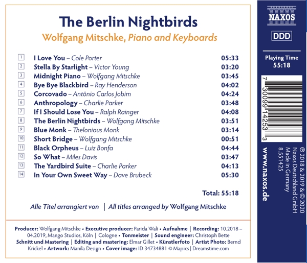 01. "I love you" 02. "Stella by starlight" 03. "Midnight piano" 04. "Bye bye blackbird" 05. "Corcovado" 06. "Anthropology" 07. "If I should lose you" 08. "The Berlin nightbirds" 09. "Blue monk" 10. "Short bridge" 11. "Black Orpheus" 12. "So what" 13. "The yardbird suite" 14. "In your own sweet way"